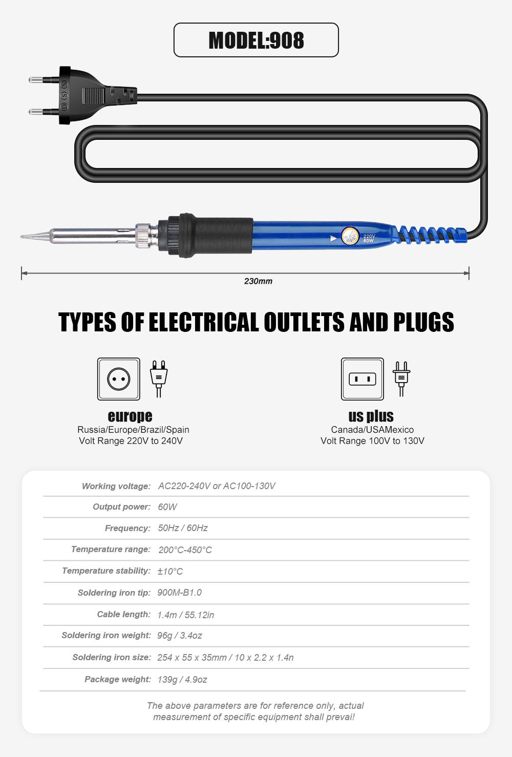 모델: 908 사양: 유럽/미국 크기: 254*55*35mm 무게: 96g 출력 전력: 60w 전압 조정 범위: ...