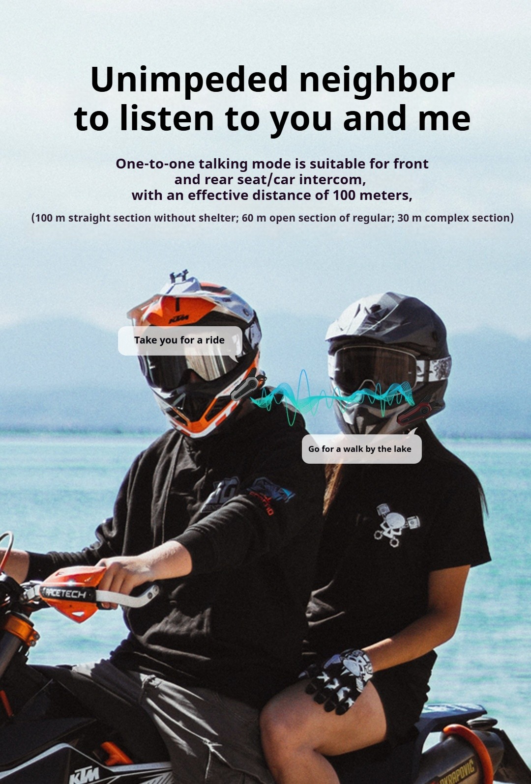 Waterproof IPX6 E1 Wireless Bluetooth Intercom Headset 2 Riders Intercom for Motorcycle Helmet